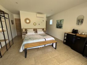 Patios di Pruno vous propose la suite « Capitello » pouvant accueillir 2 personnes maximum. Cette chambre élégante et climatisée dispose d’un lit King Size et d’une grande douche à l’italienne. Elle comprend également un espace collation avec une machine Nespresso, une bouilloire et un mini frigo. Terrasse couverte de 15 m2 avec petit salon de jardin. Wifi et place de parking gratuits.