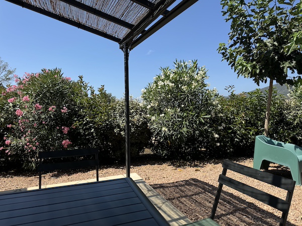 Patios di Pruno vous propose le T2 « Bruzzi » de 44 m2 pouvant accueillir 2 adultes, 1 enfant et 1 bébé. Chambre spacieuse avec lit Queen Size et 1 lit pliant. Pour bébé, lit parapluie à la demande et gratuit.